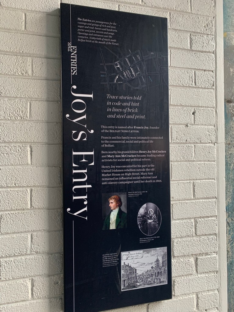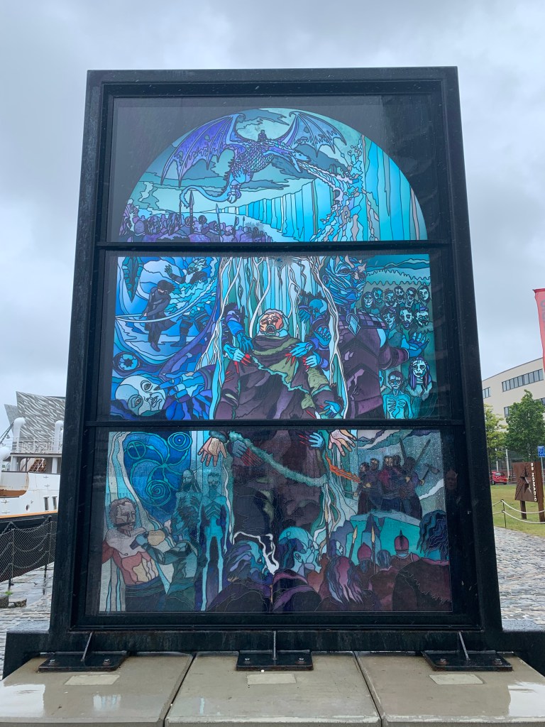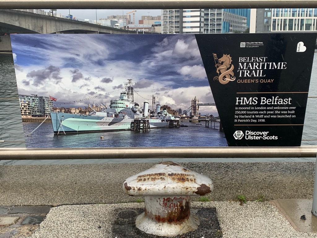 Along the Maritime Mile, there are many references to Harland and Wolff, a shipyard that was responsible for building White Star Line ocean liners, including the Olympic-class trio: RMS Titanic, RMS Olympic and RMS Britannia.