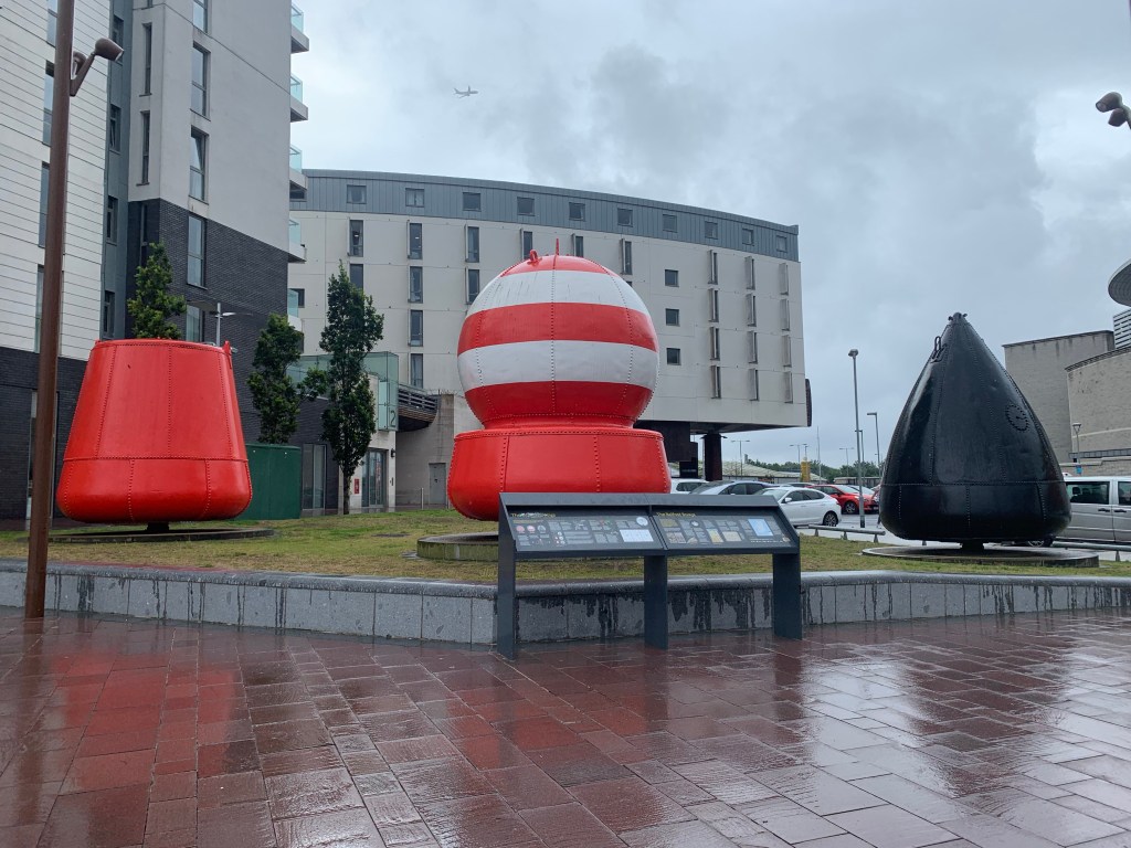 The “Belfast Buoys” are a local landmark that were originally donated in 1983 to Belfast City Council by the Commissioners of Irish Lights. Originally in Cathedral Gardens, they were moved to their new location in Abercorn Basin in 2019 following restoration.