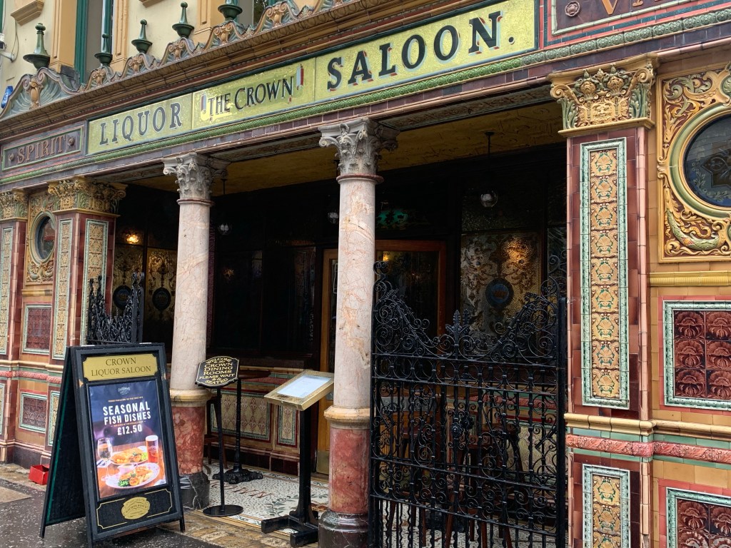 The Crown Liquor Saloon is an absolute gem. It dates back to the 1880s and was a Victorian Gin Palace. Standing on the corner of Great Victoria Street and Amelia Street, it is difficult to miss.