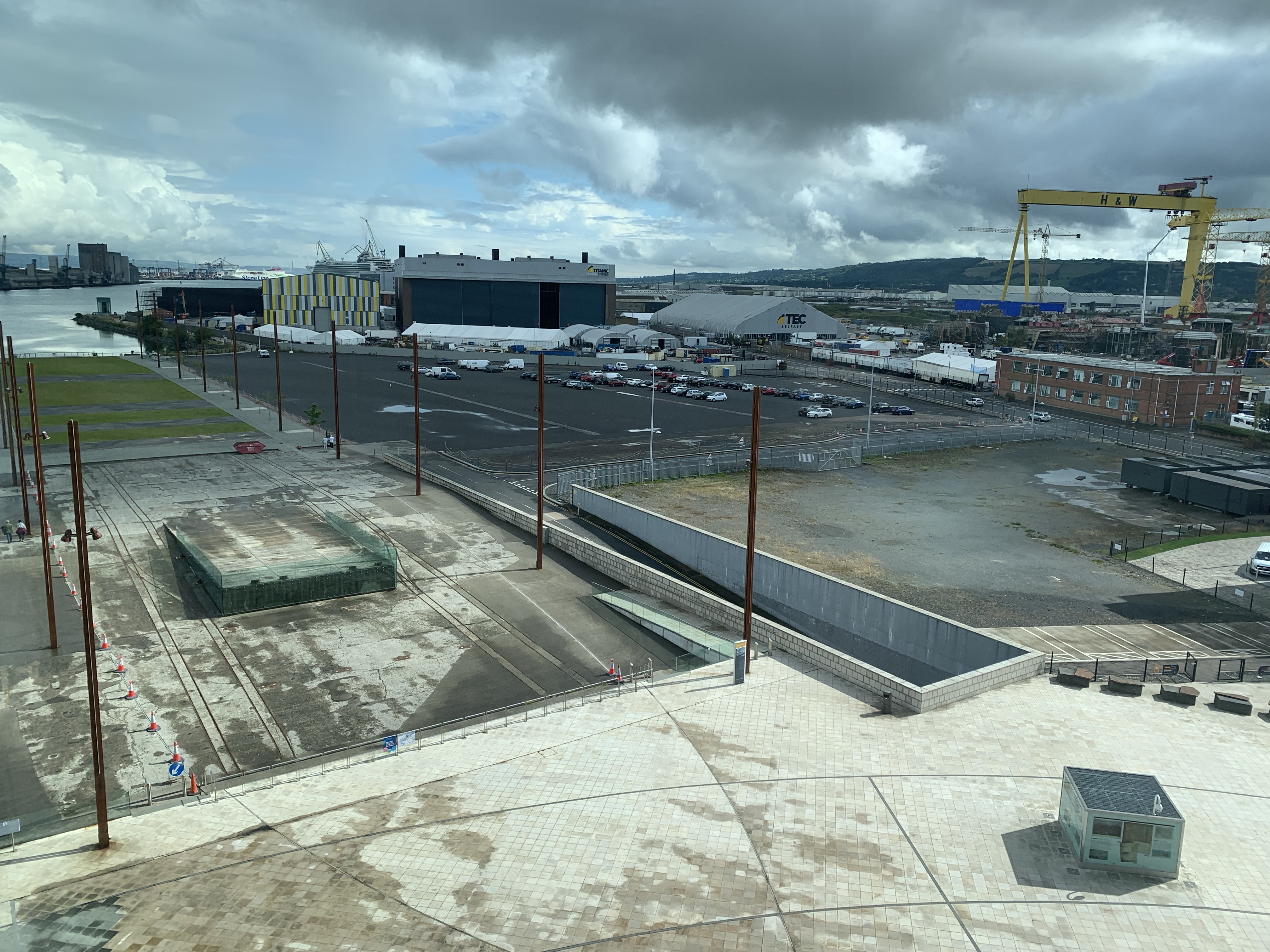 It is easier to see the actual slipways of RMS Titanic and RMS Olympic from higher up within the Titanic Experience building.