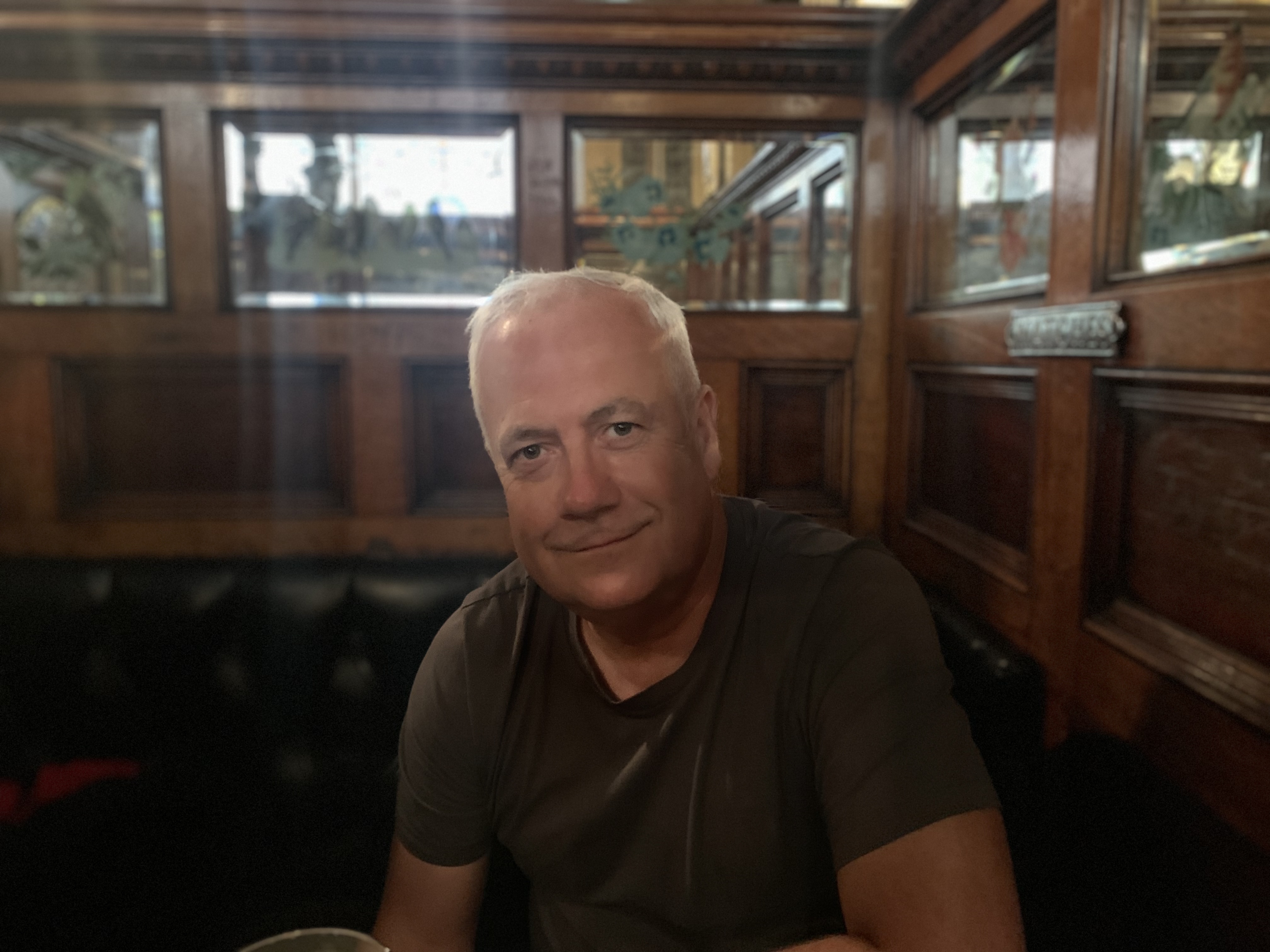Following our quick drink, we went back to The Crown Liquor Saloon for some more tempting food and drink. This time I had Irish pork and leek sausages with champ (mashed potatoes with cheese) and onion gravy. This time we were in snug booth A, next to some very lively British Irish men on a work’s outing, who were making the most of the company entertaining budget!!