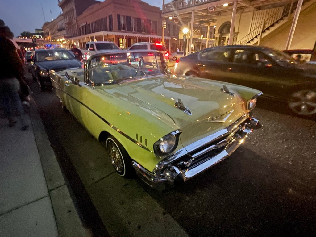 Once we’d eaten we headed back to Old Sacramento. I was hoping to see the new neon sign that has been recently installed, but it wasn’t dark enough to be switched on. We didn’t expect to see so many customised classic cars cruising up and down 2nd Street. Some were parked up and owners were chatting to each other. I don’t know if it was a special meet up, or a regular Saturday night event. We saw classic Chevrolets, Buicks and other customised cars. Some drivers clearly wanted to show off, with upgraded suspension that allowed the cars to bounce up and down, or raise up one side as the car as it cruised along. It certainly was a posers’ paradise.