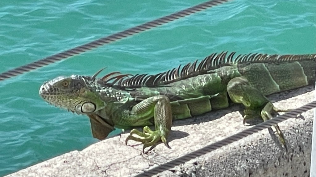 By this time it was bright sunshine so thought it was time for a spot of lunch, seeing as we were close to a nice eatery called Bistro 245. We were shown to a table close to the waterfront and we were immediately brought some ice cold water. I had a great chicken Caesar salad, and it was near here that I saw some more iguanas. So exciting!!