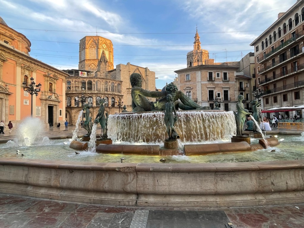 After taking a few photos we headed further north along the Carrer Del Micalet, towards the Plaça de La Verge. Also known as the Plaça de La Mare de Déu, this is a lively square with restaurants and the Turia Fountain. Here we found the centrepiece is a depiction of Neptune surrounded by the Turia river.