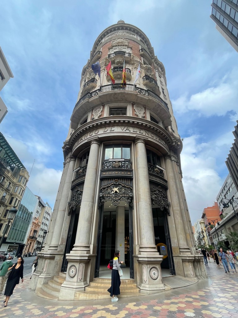 So next, we headed towards the impressive railway station, the Valencia Estacio del Nord Railway Station. Beside this is the Plaza Toros of Valencia, commonly known as the bullring. Some 10-15 minutes later we arrived at Casa Judia on Carrer de Castelló. This colourful and interesting building, situated in the south of Valencia’s historic district, was built in 1930. It is art deco in style, and its name translates as “Jewish House”. It had a Star of David above the entrance to the building, which was used to host traditional Jewish celebrations discreetly, in the small Jewish community of that time.