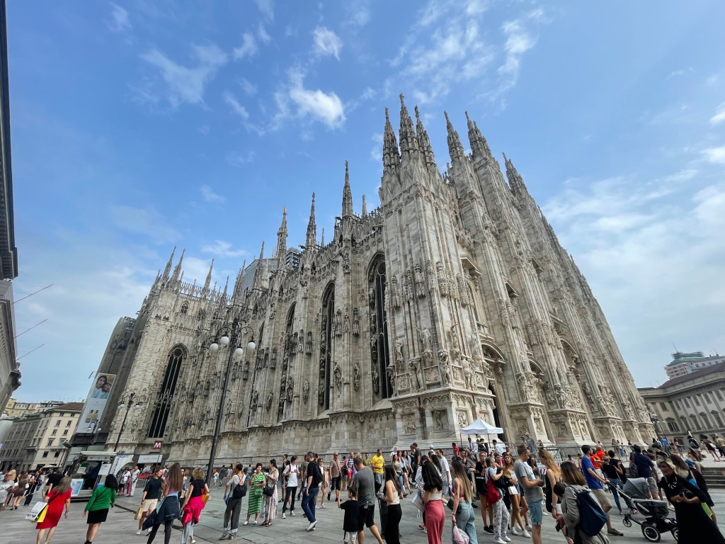 Once we’d paid the bill, we went to do some more exploring. We passed the Palazzo Della Ragione, an old building that was built in the early 13th century. On one of the arches we saw a stone relief of a sow which is depicted half-covered in wool. Legend has it that Milan’s name (Medio lanum meaning “half wool”) originated from this relief.
