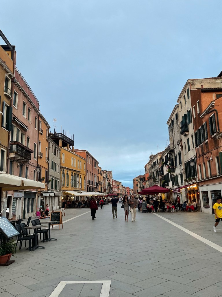 We were surprised to find Via Garibaldi, an unusually wide street that was filled with bars and cafes on either side. This street is known as a rio-terà, a former canal that has been filled to create the pedestrianised road. This place had a great vibe and we wandered down it, whilst being offered a table to eat supper at a few of the restaurants.