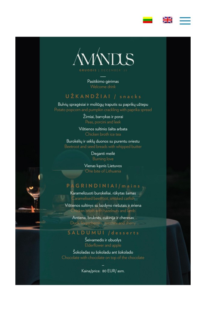 This had been recommended to us by our hotel staff after I’d contacted them a few months before. This restaurant gave us a dining experience we had never had before. The owner and award-winning chef, Deivydas Praspaliauskas, was very much hands on, explaining to us that he had learned his craft in Copenhagen. He also said that he likes to be organised and not to work in a loud environment where everyone is shouting at each other. He was excited for us to be there and to try his set tasting menu. The food was cooked in the immaculately presented kitchen which was part of the restaurant. Everything was exquisitely delivered, taken in turns by those in the kitchen. We were given an explanation by the sommelier of the wine pairings that went with the food. Each course was completely different and nothing I had ever come across before. We tried smoked catfish, beetroot and licorice bread, chicken broth ice tea and caramelised beetroot. The final two dessert courses involved blow torches and dry ice, which added to the whole experience.