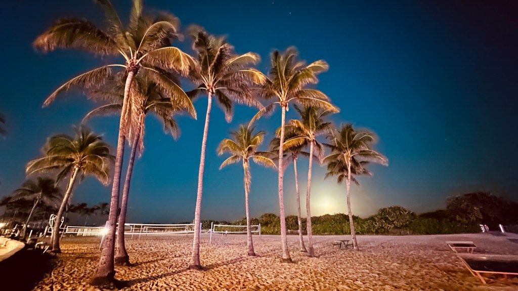 Once we’d eaten we headed to South Beach. The sun was setting which was a perfect time to go. The moon was just coming up over the horizon so it gave me the chance for a bit of a photo opportunity. We then went to a Mexican bar/restaurant for a margarita before stumbling upon a great bar/club called Mango’s Tropical Cafe.