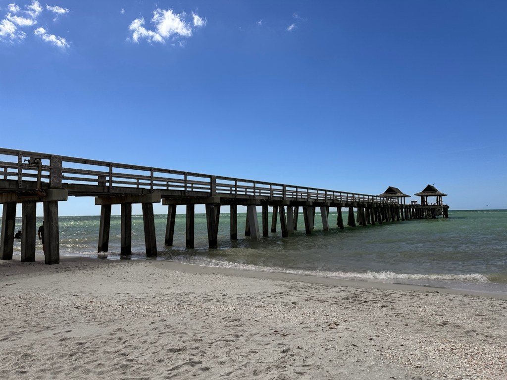 It was cooler (but not much) on the beach. There was a strong breeze coming from the Gulf of Mexico which was very welcome. We walked south towards the famous Naples Pier, and I picked up a few shells along the way.