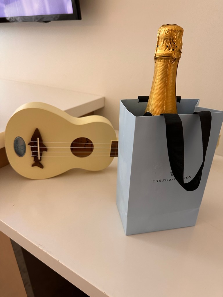 We parked up outside the hotel and left the car with the valet. A lady came up to us and said that she was leaving to go to the airport. She had a bottle of champagne in a bag and said that she couldn’t take it with her on the plane, and offered it to us. We obviously accepted this random act of kindness.