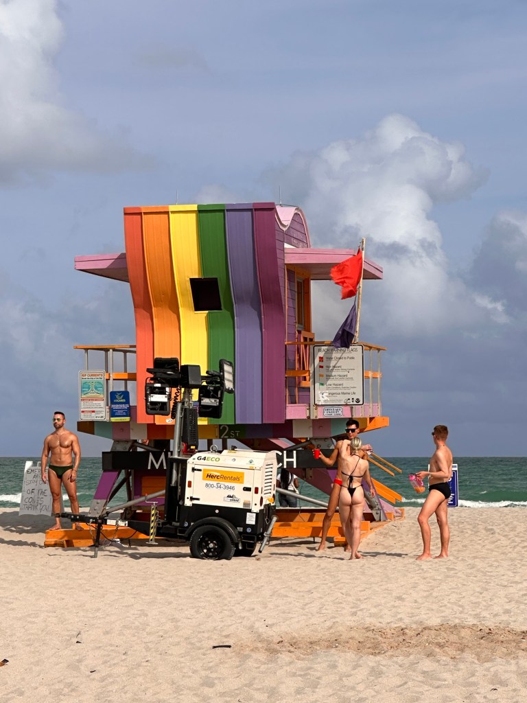 I noticed there was a large crowd of males hanging around near a rainbow painted lifeguard hut. Some were posing for photos near the hut and others were just hanging out with partners, friends etc.