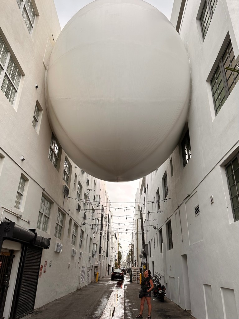 We enjoyed our afternoon just mooching about before heading back towards Collins Avenue. I wanted to take some pictures of the Betsy Orb. Here’s one of me stood beneath it, so you can get an idea of how big it is.