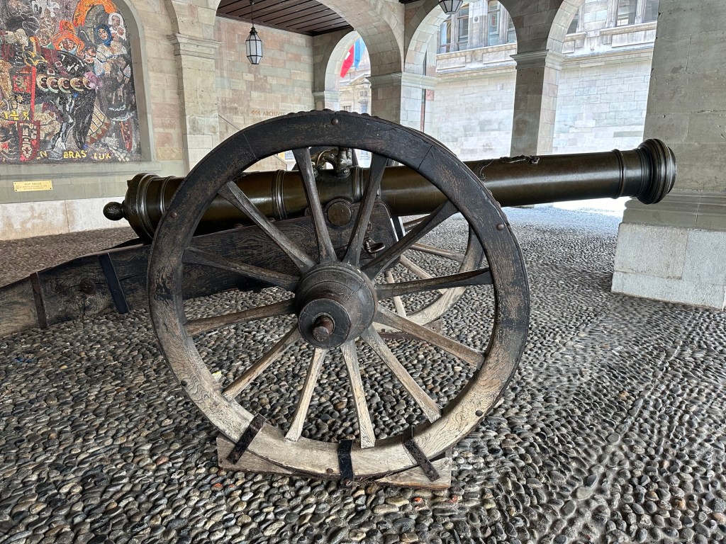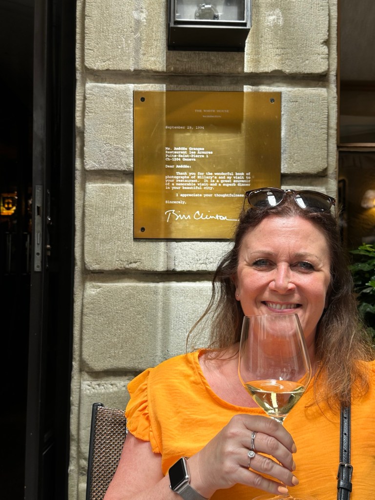 It was at this point that we headed to the Restaurant les Armures for my cheese treat, the Swiss fondue. We were seated outside, on a shared terrace positioned at the foot of the Old Arsenal. We were close to the entrance and were waited on by Jerome, who was fabulously crazy. He rushed about the whole time whilst we were there, but gave us the best attention. We opted for some Chasselas wine, and a traditional fondue, made from the Vacherin and Gruyère cheeses. It took around 15 minutes from ordering to get our food. The fondue was served with a stack of bread and some potatoes. The whole experience was absolutely fabulous. Anyone who knows me well will know of my love for cheese. This was top five material. It was absolutely one of the best, most sociable eating experiences ever. I can understand why Bill Clinton, who ate there, wrote a letter to the restaurant. His comments are duplicated on the plaque behind where I was sitting.