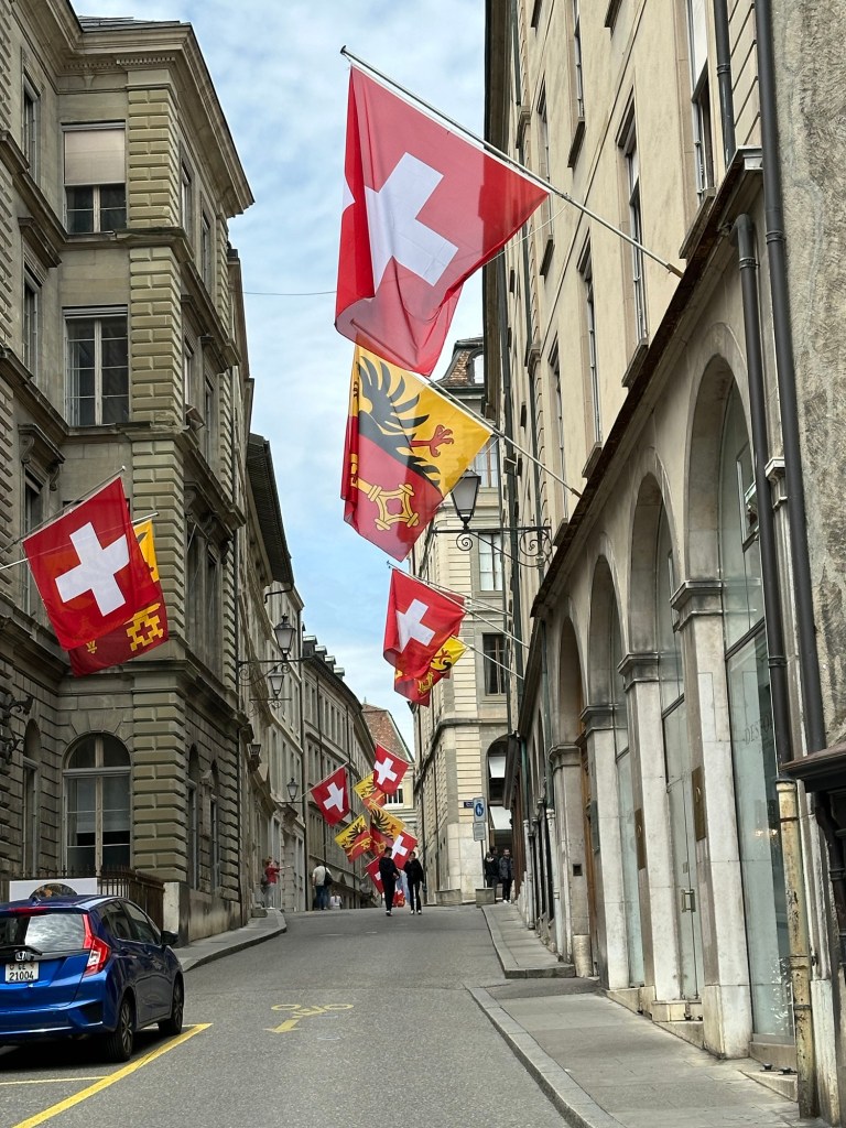 Once we had eaten we went back to the hotel for a short while before heading towards the Old Town. This is a very pretty part of Geneva, with many scenic area situated around Cathédrale Saint-Pierre. This area, as well as the Place du Bourg-de-Four, are both worth visiting. Here there are many lovely cafes where you can sit in or out. By the time we got to the Old Town, it was bright sunshine and very pleasant again.