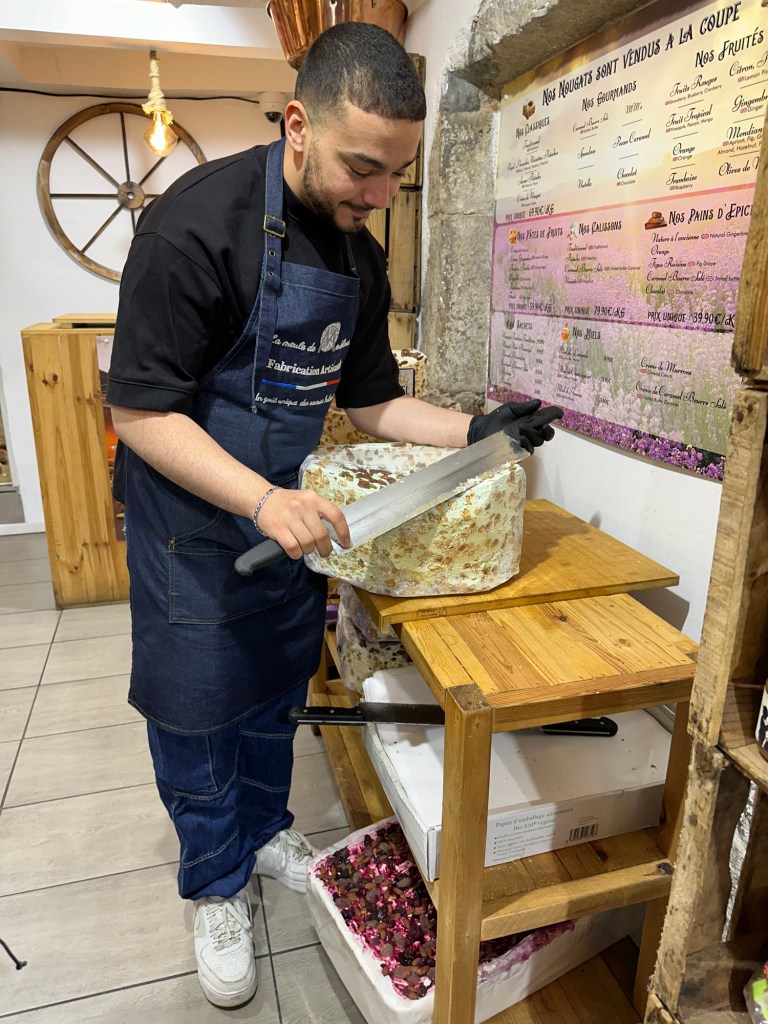We ended up in the old town at the Rue di Pont Morens where there were many small independent shops. Unfortunately with it being so close to the water there were little midges everywhere. We spoke to a young man selling nougat who said that they don’t bite and we somehow ended up buying some pistachio nougat.