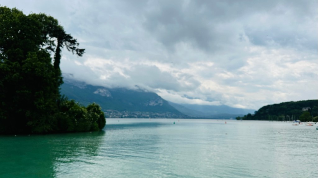 The scenery on the journey to Annecy was very much like the Lake District, very lush and green. There were quite a few low, dark clouds but, at this point, no rain.