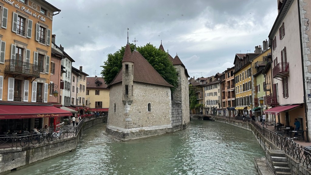 We awoke quite early and could hear the rain lashing down outside. Not the best start to our day for our trip to Annecy in France. This had always been part of our plan, to visit the Venice of the Alps. The hour long single bus journey was booked months ago for the princely sum of £12.96 for two people. We’d used FlixBus to travel from Zagreb in Croatia to Ljubljana in Slovenia a few years ago and it’s a cheap way to travel. A little bit of rain wasn’t going to stop us today.