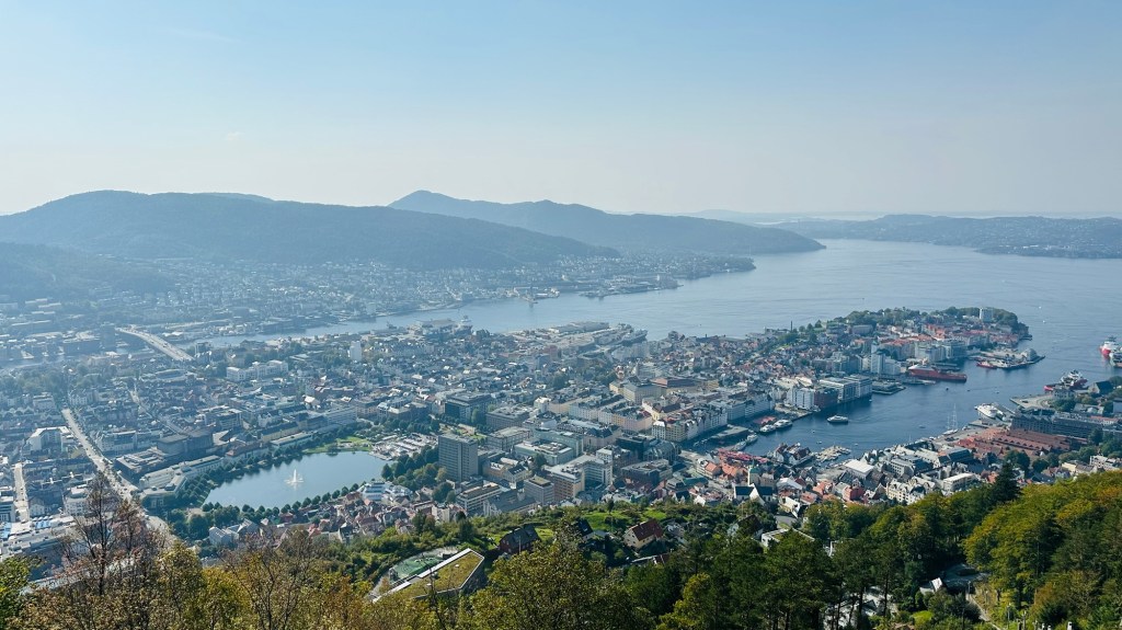 It was a bit of a wow moment when we exited the cabin and went outside. The vistas of Bergen were absolutely breathtaking. There was no wind up there, the temperature was mid 20s and the sun was beating down on us. There is a bar and restaurant up there so we decided to try a local beer or two, shaded from the sun. I guess the beer at Lykkeboden (Lucky Booth) is quite strong as it went straight to my head.