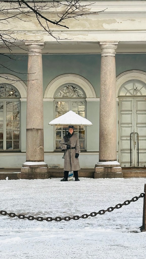 We then decided to head to Senate Square and ended up going a different way. We passed the Presidential Guard, at the Main Guard Post, who must have been freezing stood outside in the snow. His picture is at the top.
