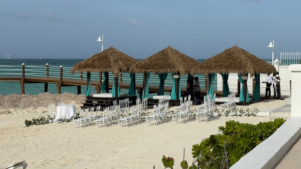 I was feeling the effects of travelling from the day before, so we headed back to our room for a siesta. When I woke I got a burst of energy so we headed to the gym, where I went on the running machine for half an hour. The gym is six floors up and we had a great view of the Caribbean Sea and also the wedding taking place beneath us.