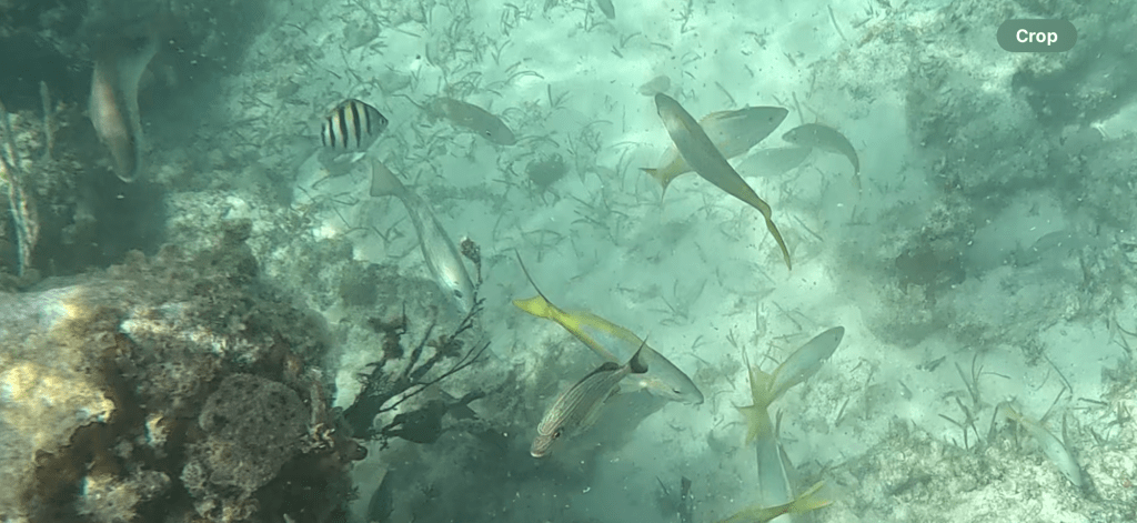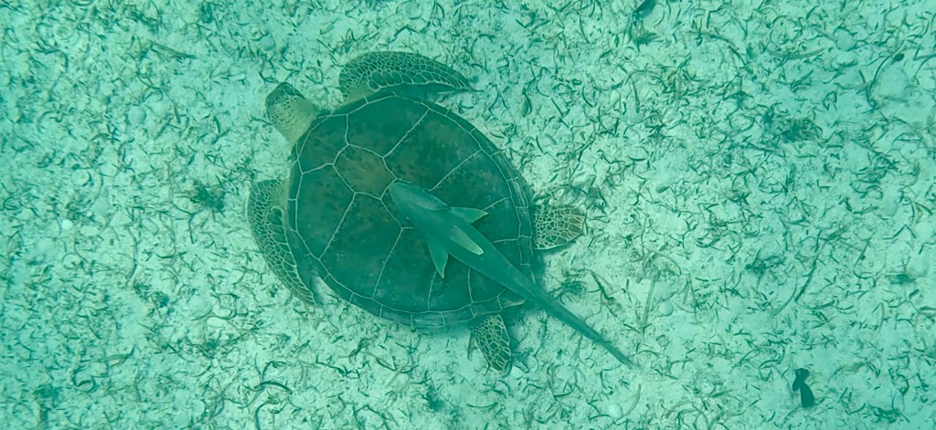 When everyone was ready, we had a safety briefing. The snorkelling experience was fundamentally a guided tour of the ocean, so we had to follow the guide who led us around the waters of Sandy Toes. We went down the steps, put our flippers and masks on, and got into the ocean. It was quite busy, some 50 or so people were taking this opportunity so, to begin with, people were getting in the way of others. Once we’d got going it was better as people spread out more. I was so excited to see the turtles on our journey too.