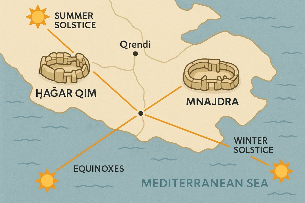 Each temple features curved apses, sone benches, intricately carved doorways and altar-like structures. Similarly to Ħaġar Qim, the lower temple is particularly famous for its astronomical alignment. During the equinoxes, sunlight passes through the main doorway and illuminates the central axis. During the solstices, light highlights the edges of specific megaliths in the temple. This suggests the site had a ritual calendar function tied to solar events. Tools, decorative stones and figurines were also found at the site.