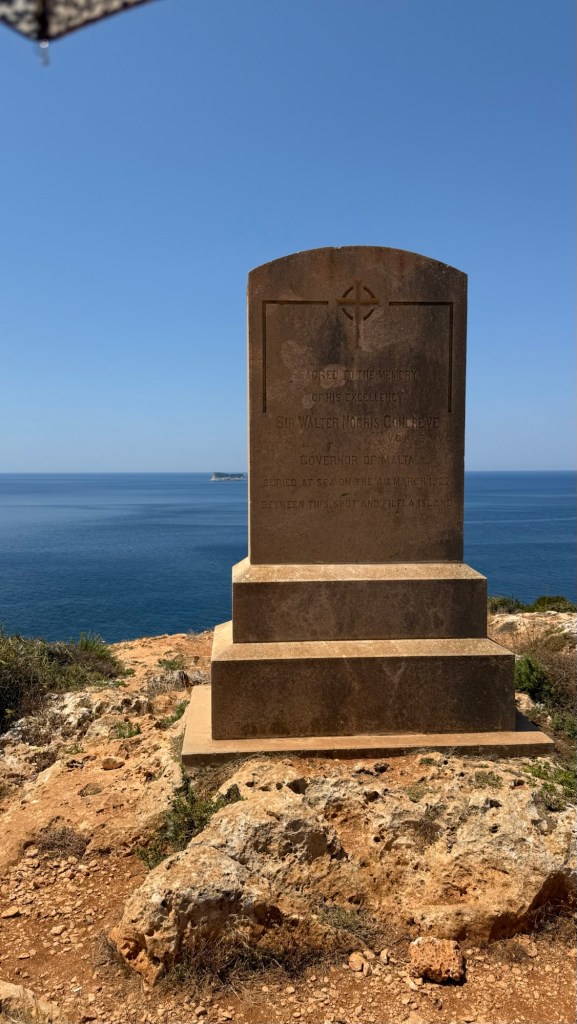 Once we’d seen the temples, we followed a heritage trail that took us along a signposted route where we saw a few other points of interest along the coast. The first was the Congreve memorial, dedicated to Sir Walter Congreve (1862-1927). He was born in Kent and was educated in Oxford and became governor of Malta. When he died, he was buried at sea between Malta and Filtla.