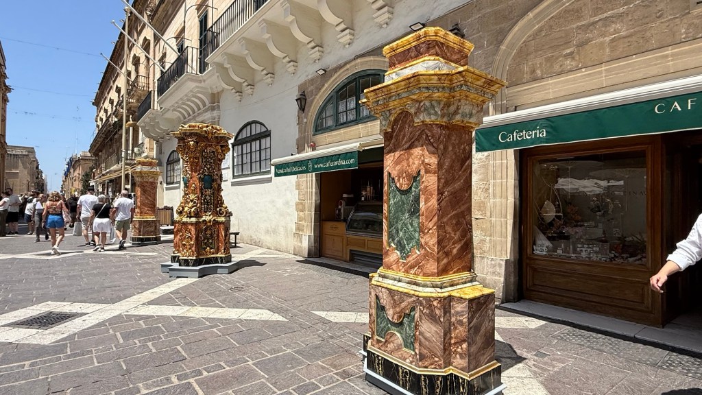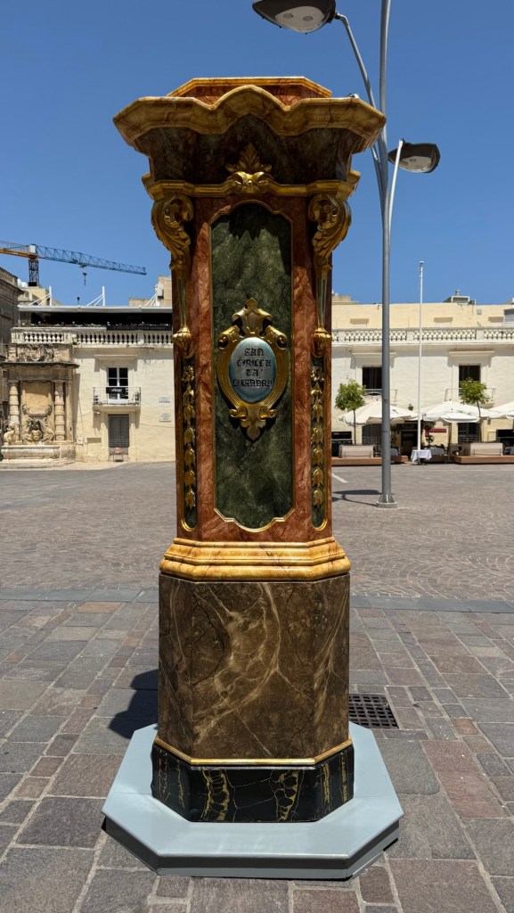 Once we’d left the museum we decided to walk further down Republic Street towards the Grand Master’s Palace. Here there were more of the ornately decorated towers on display and I hadn’t managed to find out why they were placed all over the city and other parts of Malta and Gozo.