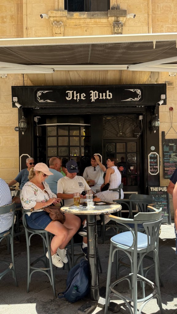 It was now midday so we paid a quick visit to “The Pub” on Archbishop Street, which is a well known English style pub in Malta. The legendary actor Oliver Reed had his last drink there before collapsing and dying.