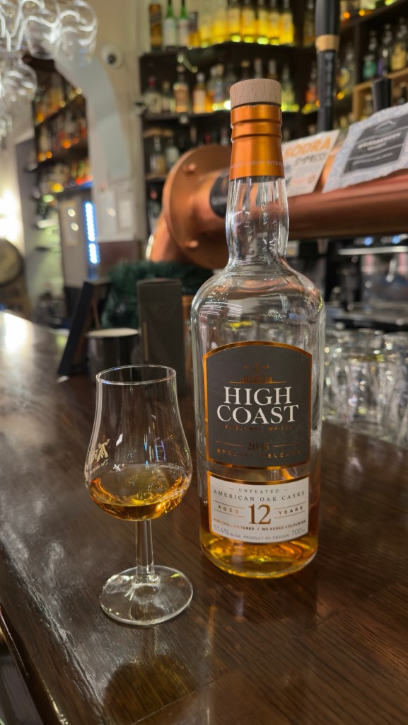Our next stop was Ardbeg Embassy, a bar and restaurant boasting an exceptional collection of over 500 whiskies. We only stayed for one drink, choosing to try a Swedish whisky – a relatively new concept in whisky terms.