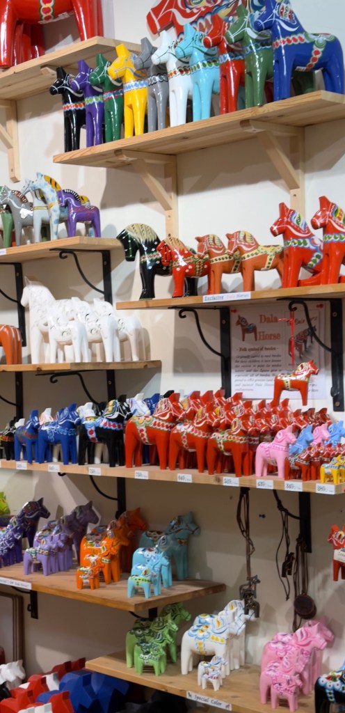 Reaching Västerlånggatan, we found icy but well-gritted cobbled street. We popped into The Dala Shop and bought a small handmade Dala horse as a souvenir – simple, traditional, and very Swedish.